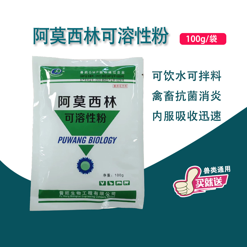 【用法用量】內服:一次量按每1kg體重雞20-30mg以阿莫西林計),每日兩次,連用3-5天,水產動物按每100kg飼料加入20g(以阿莫西林計),混勻后飼喂。