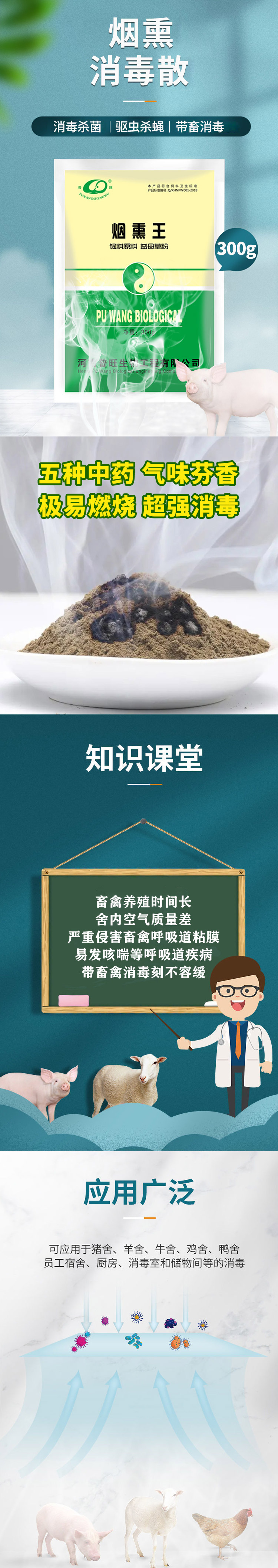 熏蒸豬舍,雞舍,牛羊舍,蠶舍,防御病毒細(xì)菌侵入,凈化環(huán)境。