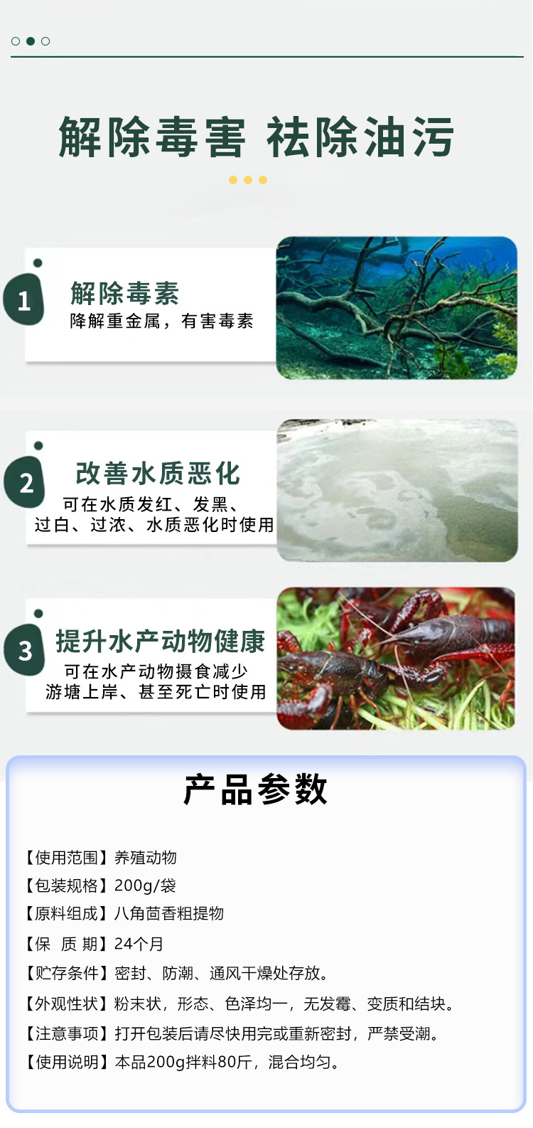 解毒調(diào)水改善水色穩(wěn)定藻相消毒殺菌護水解毒靈 分解藥殘緩解應(yīng)激為您的養(yǎng)殖保駕護航 改善水色,穩(wěn)定藻相,消毒殺菌。" />