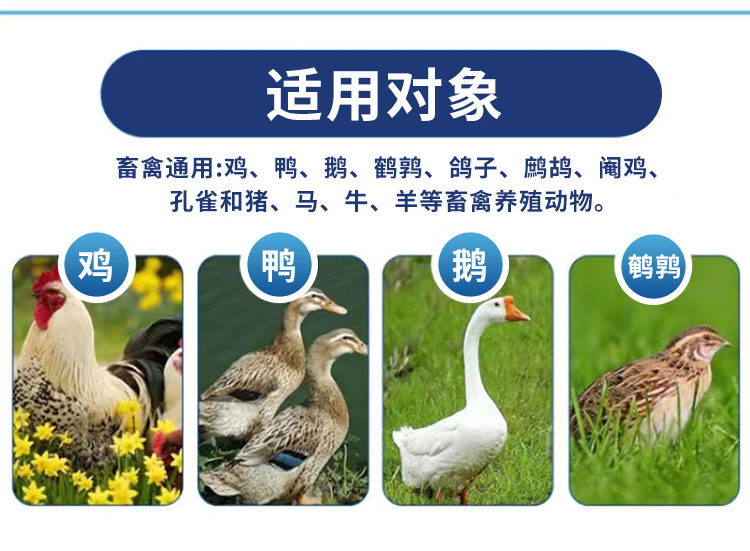 混合型飼料添加劑適用對象-雞鴨鵝豬牛羊等畜禽通用。 500ml/瓶 取本品一瓶用500只0-7日齡,7-14日齡用2瓶。 " />