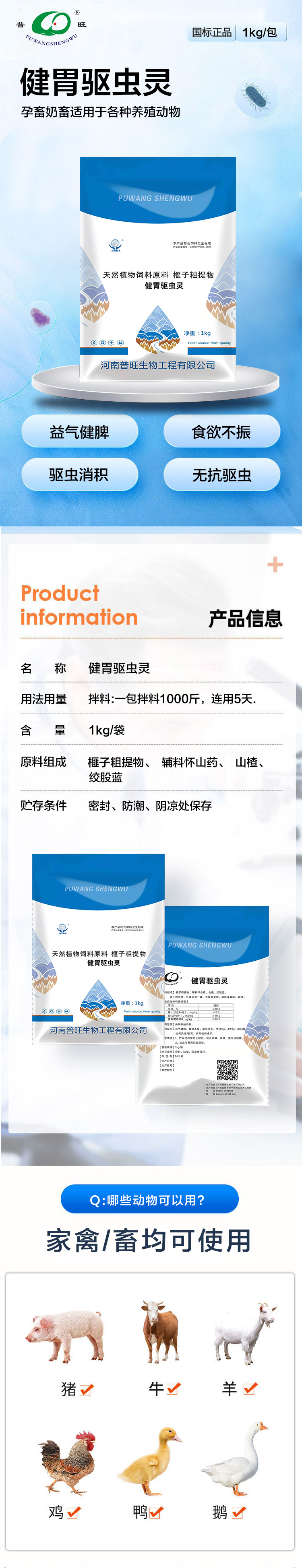 產品簡介:益氣健脾,驅蟲健胃,孕畜奶畜可用